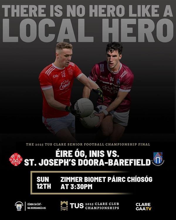 This week the senior game is preceded by the Intermediate final pairing of Cooraclare and Corofin. That game starts at 1.15.
